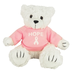 8" White Curly Bear with Shirt and 1 Color Imprint